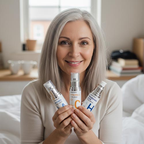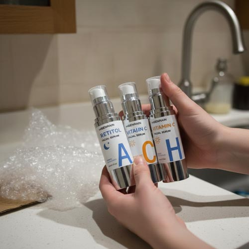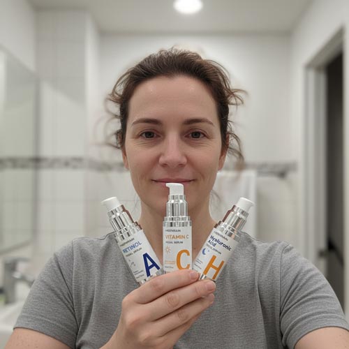 Then add Vitamin C. Finally introduce Retinol slowly, 2–3 nights per week. Always patch test on your inner arm before full-face application.
