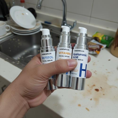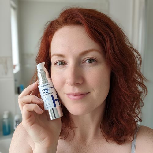 This way you get the full benefit of both without any risk of irritation. Hyaluronic Acid works anytime — morning, night, or both.