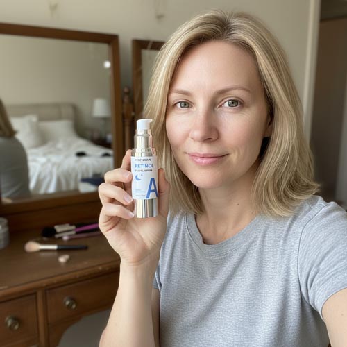 The key is starting slow: use it 2–3 nights per week for the first 2 weeks, then build up gradually. Always apply at night, always use SPF the next morning.