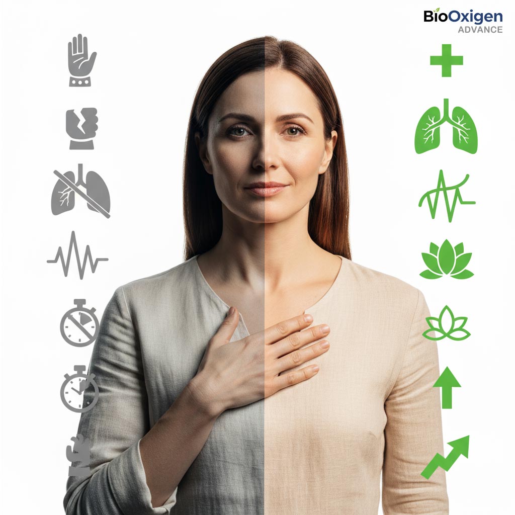 Después de miles de sesiones respiratorias con BioOxigen ADVANCE, muchos usuarios coinciden en lo mismo: no sabían cuánto podía influir su manera de respirar en su bienestar diario. Las valoraciones que más se repiten destacan una sensación clara de mayor energía desde los primeros días, una mejor calidad del sueño y una capacidad renovada para mantener la calma incluso en momentos de estrés o ansiedad.