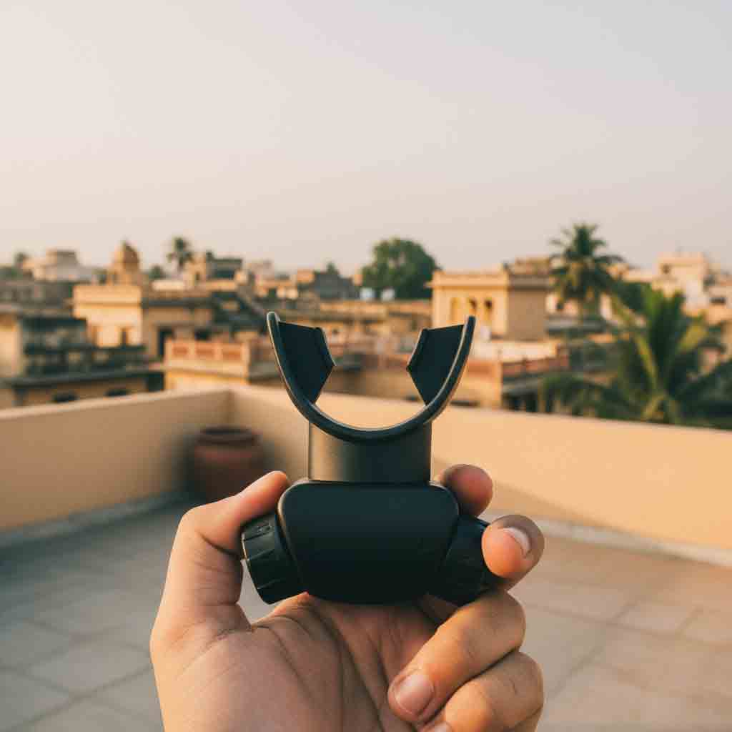 2. Coloca la boquilla — Introduce suavemente la pieza en la boca, manteniendo la postura recta.