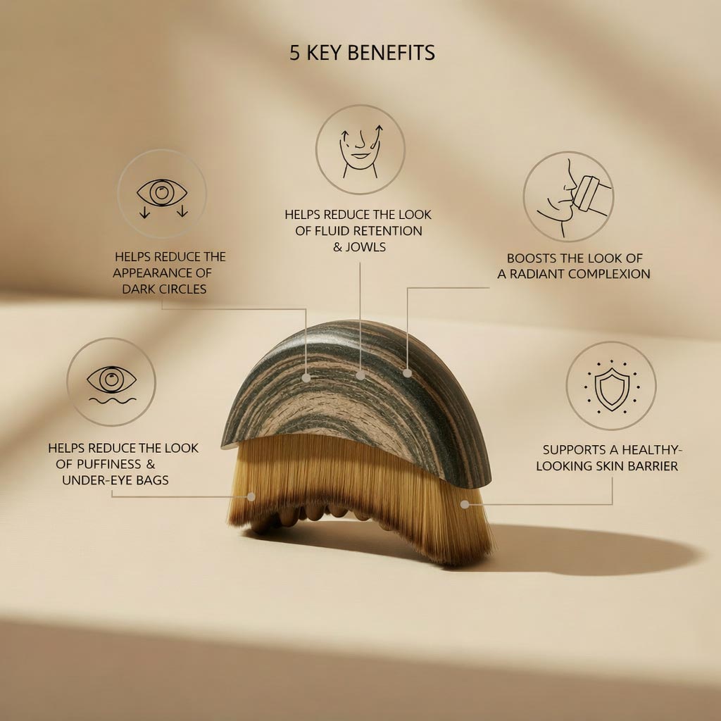 Your face naturally holds fluid — especially around the jawline and under-eyes. A light, upward massage encourages healthy-looking movement and helps reduce the look of morning puffiness.
